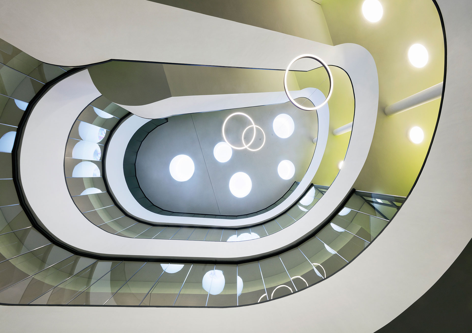 Bearbeitung im Büro Bodamer Faber Architekten: Wettbewerbsbearbeitung Hansjörg und Achim Bodamer, projektbegleitender und projektverantwortlicher Partner (Achim und Hansjörg Bodamer) in LPH 2-5 sowie in der Innenraumgestalt und in der Künstlerische Bauleitung.