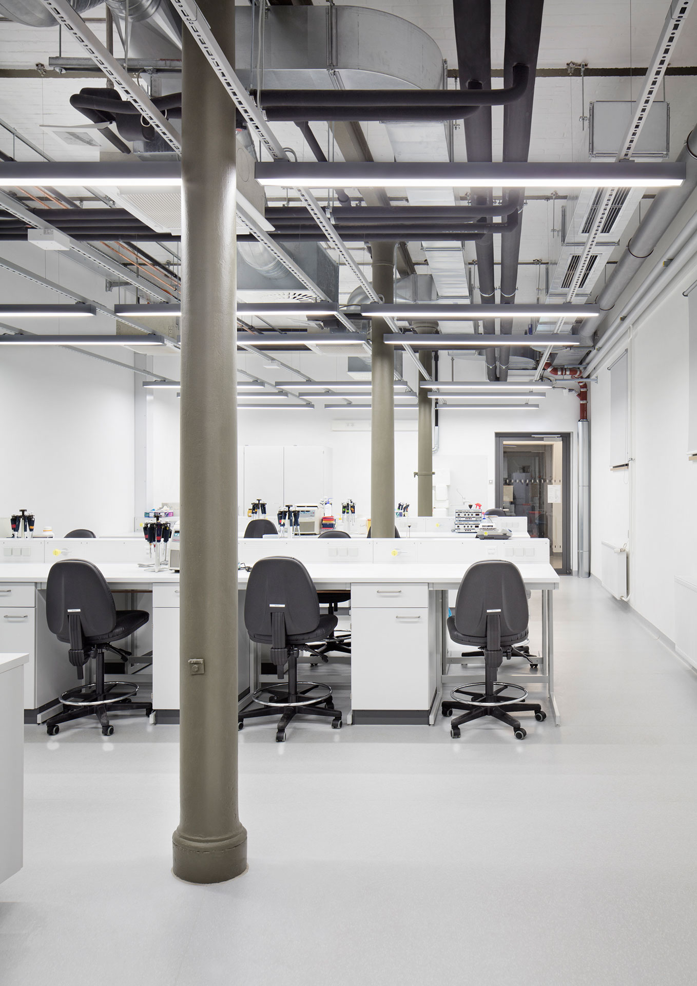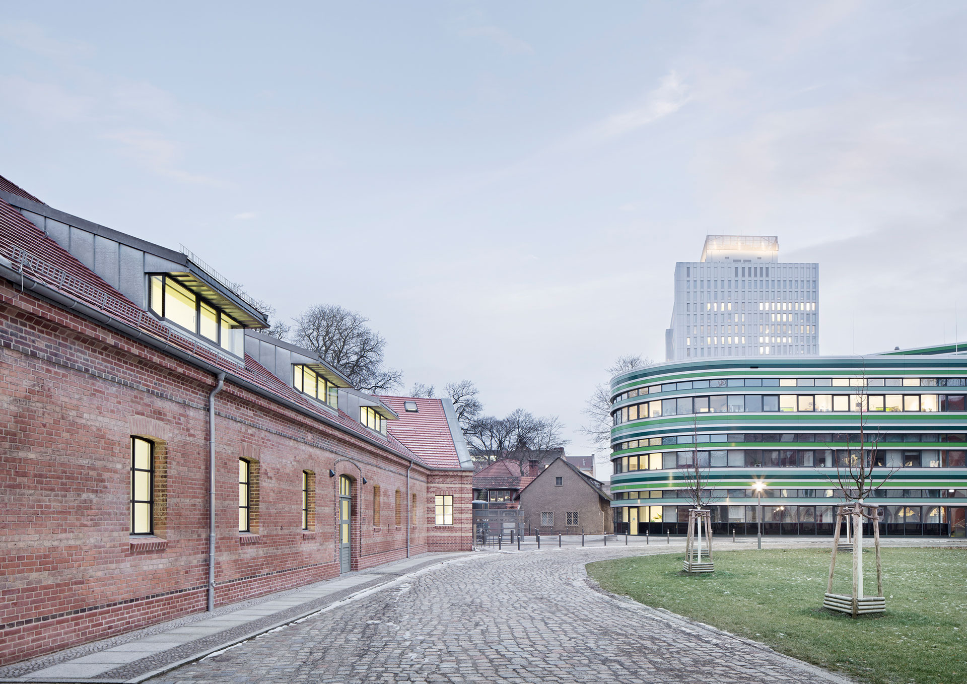 Projektbeschrieb: Neben der Planung des Neubaus, dem Forschungs- und Laborgebäude für Lebenswissenschaften, erfolgte die Planung des danebenliegenden historischen Gebäudes, das einst als Pferdeklinik diente und nun prosaisch „Haus 9“ genannt wird. Der nördliche Teil wurde 1836 von Ludwig Ferdinand Hesse gebaut, der südliche Teil 1874 von Julius Emmerich als Erweiterungsbau der Pferdeklinik.