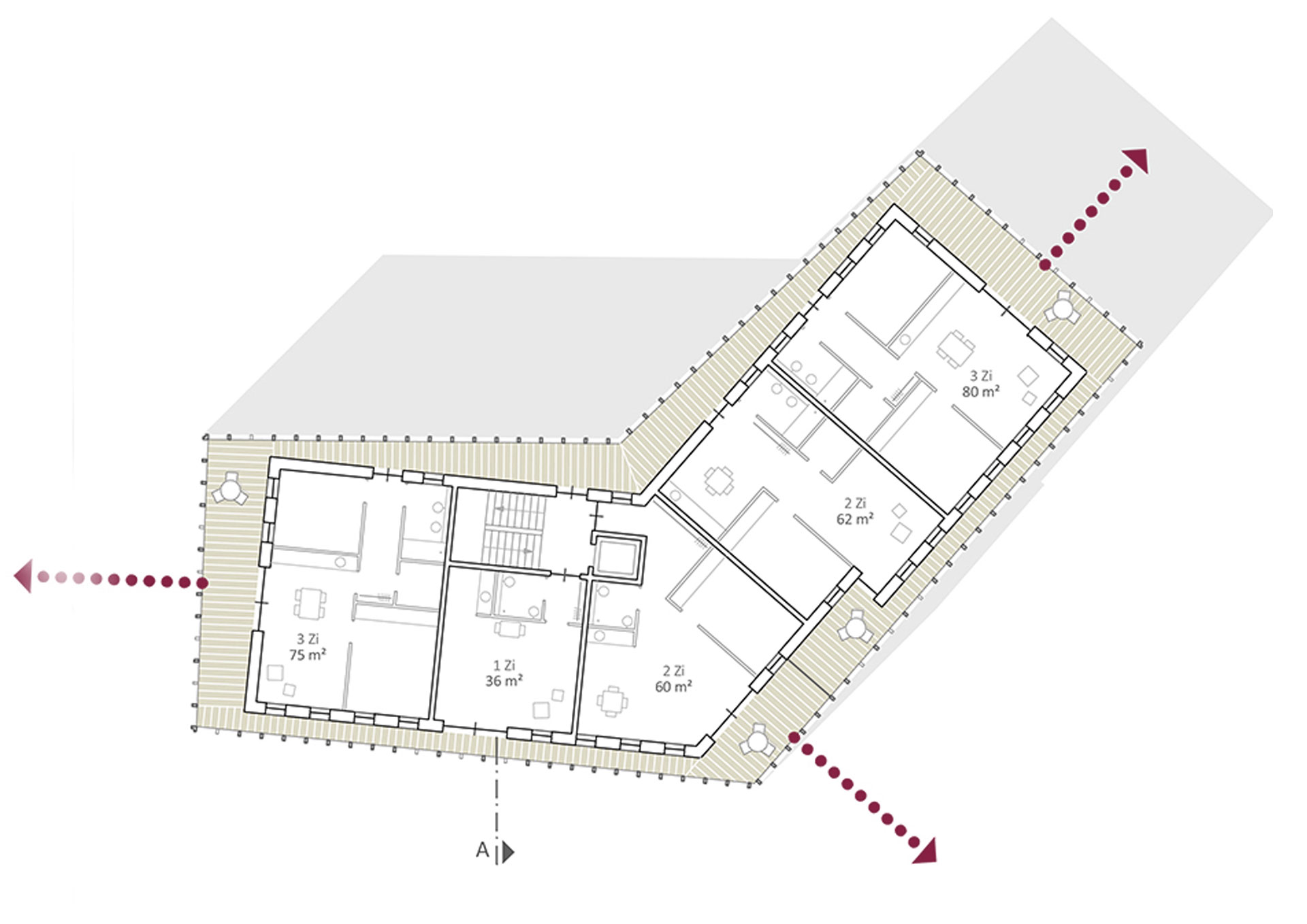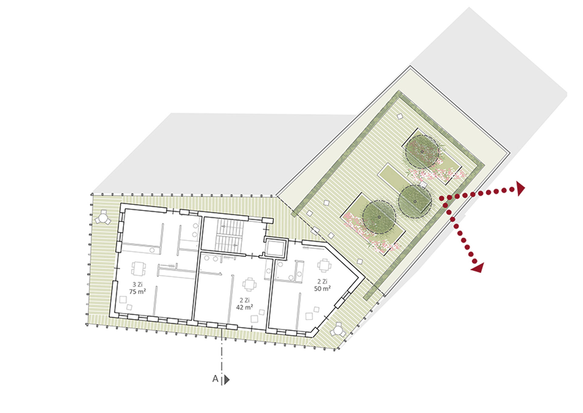 Flächen und Kubatur: NUF 1.860 m²/ BGF 2.217 m²