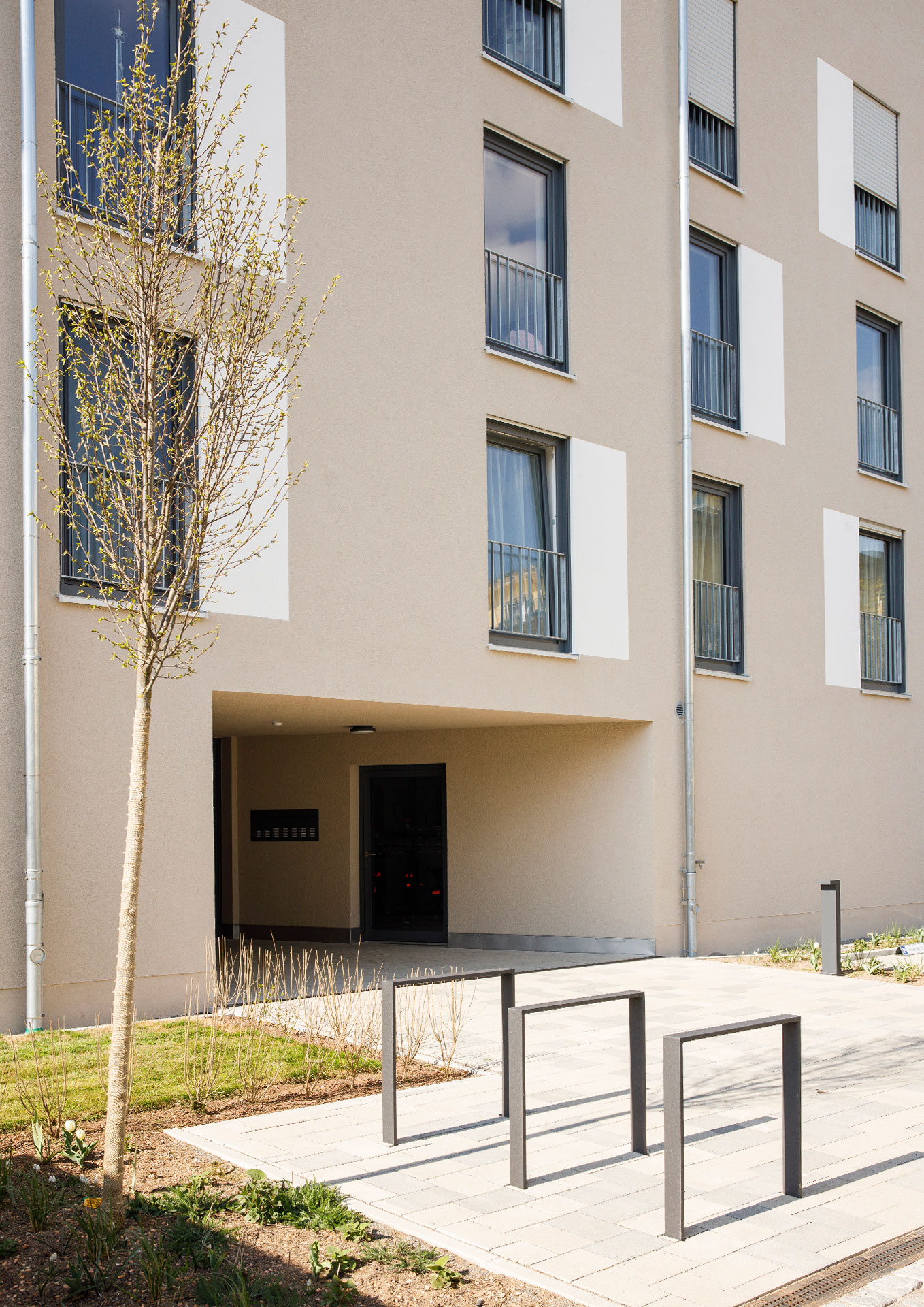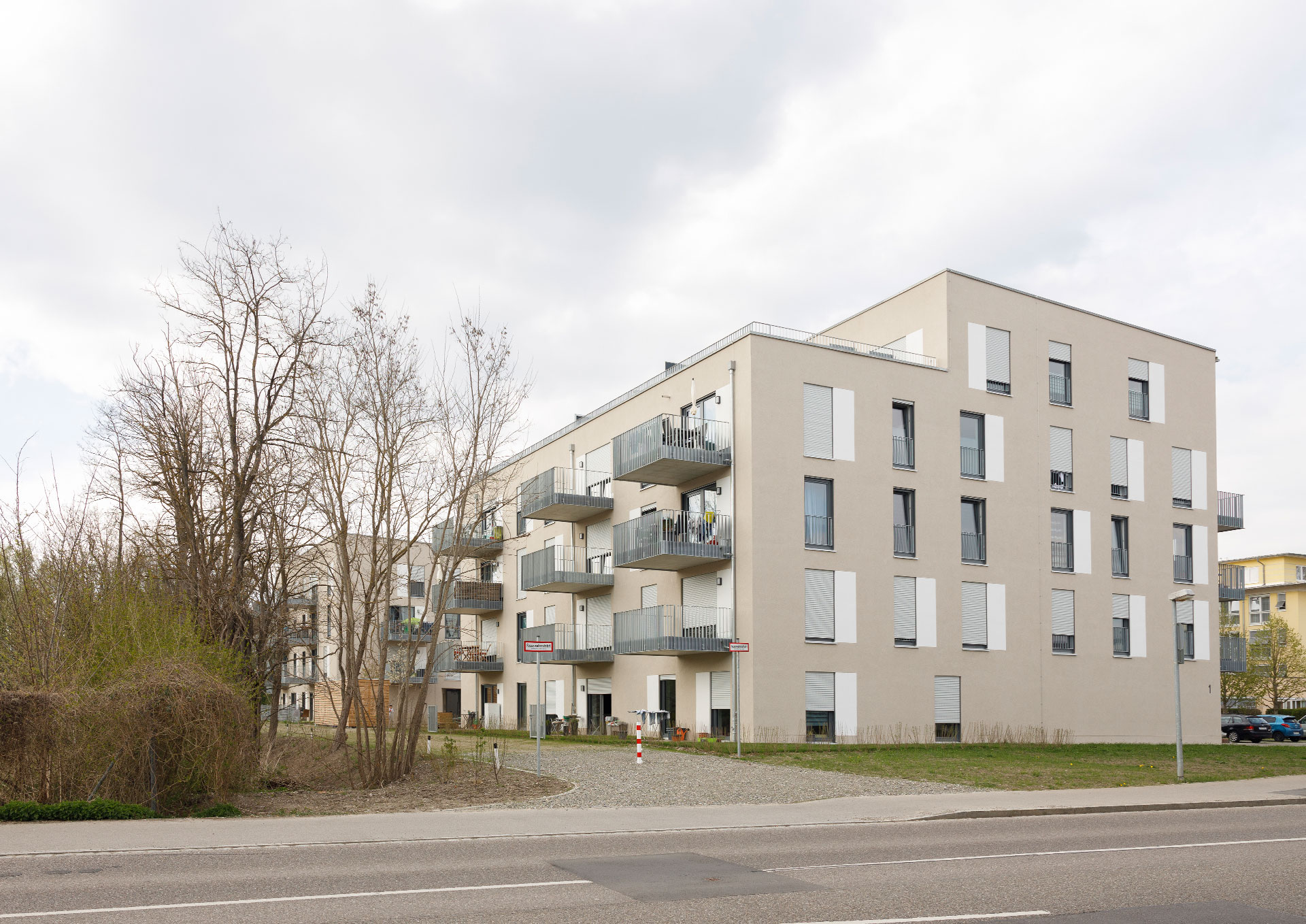 Projektbeschrieb: Die drei neuen Mehrfamilienhäuser gewährleisten durch ihre kompakte Bauweise als Punkthäuser und die geringe Kubatur eine gute Wirtschaftlichkeit als auch eine hohe Wohnqualität im städteräumlichen Kontext. Die 3 Gebäude (/2 Wohnungen) bestehen aus 32 geförderten, 27 freifinanziert und 13 Betreuten Wohnungen.